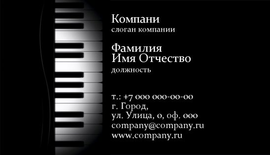 • добавляем текст (название компании, слоган, ФИО и должность специалиста, контактные данные);